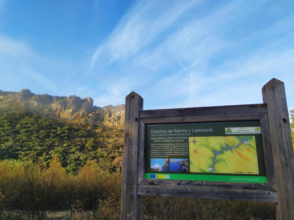 RUTA: unos 4 km. desde la ermita del Cristo (punto de inicio) en la localidad de Cachorrilla nos llevará hasta el corazón de los Canchos, allí divisaremos una espectacular portilla de cuarcita sobre el río Alagón. De gran riqueza ornitológica, este territorio destaca también por sus bellos ecosistemas: bosque y matorral mediterráneo, dehesa, cursos fluviales y roquedo. | Mapa de situación |