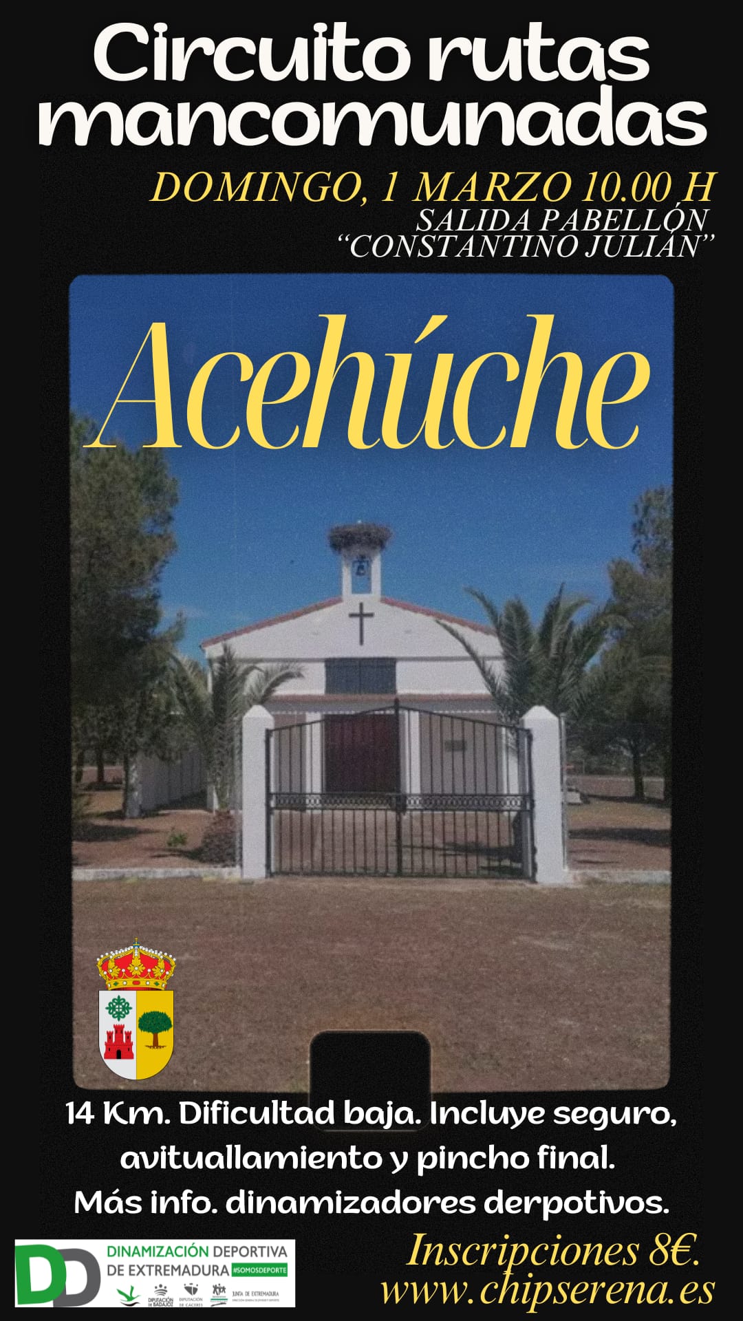 SE ADJUNTA EL CARTEL DE LA RUTA SENDERISTA MANCOMUNADA QUE SE LLEVARÁ A CABO EN ACEHUCHE EL PRÓXIMO 1 DE MARZO DE 2026.