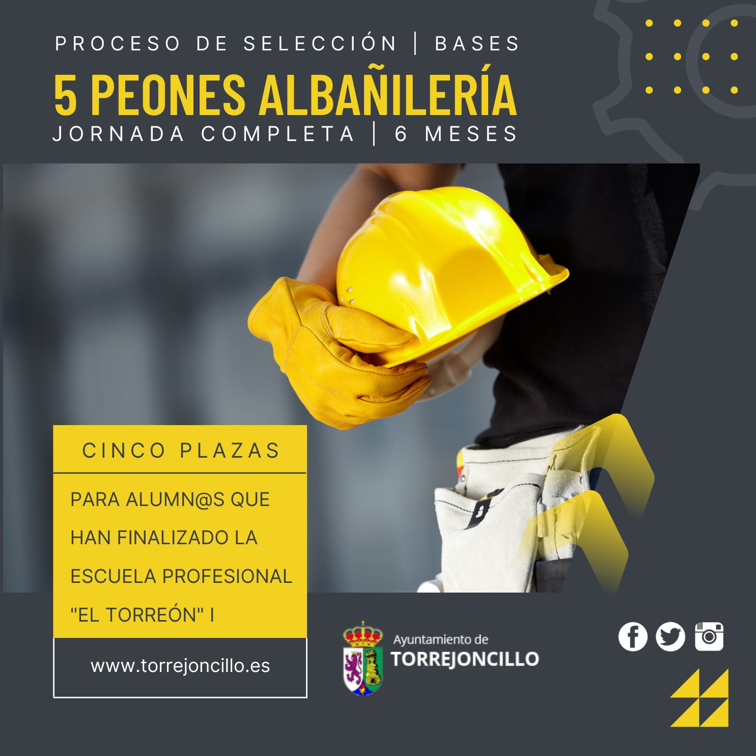 ¿¿ Se abre proceso de selección la contratación de cinco plazas de peón de albañilería, a cubrir por las alumnas y alumnos que han finalizado la Escuela Profesional de Empleo "El Torreón I".